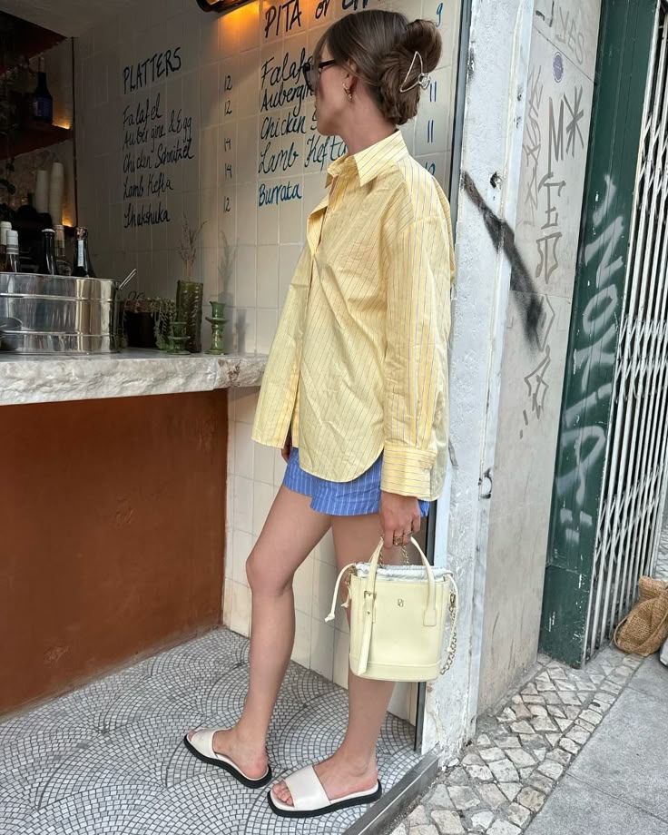 The butter yellow button-up brings breezy structure, while fun, printed or textured shorts keep the vibe light and summer-ready. Tuck it, tie it, or wear it open over a tank—this combo works for beach days, brunch, or anything in between.